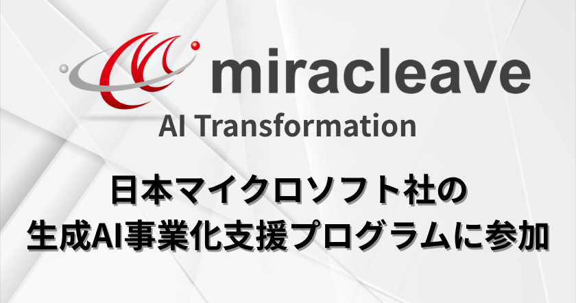 miracleave株式会社(本社:東京都中央区、代表取締役社長:松本 昌大、以下、miracleave)は、日本マイクロソフト株式会社(本社:東京都港区、以下、日本マイクロソフト)が展開する「生成AI事業化支援プログラム」に参加し、Microsoft Azure のソリューションを活用したお客さまの生成AI導入・生成AIを活用した事業の拡大・活性化を目指す取り組みをスタートしたことをお知らせします。